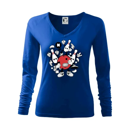 Triko pro hráče bowlingu, na kterém je bowlingová koule a kuželky. Bowlingové triko by měl mít každý bowlingový hráč. S bowlingovým trikem to bude samý strike, žádná kuželka neunikne!