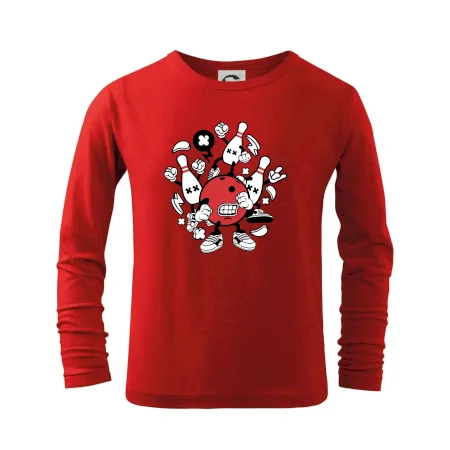 Triko pro hráče bowlingu, na kterém je bowlingová koule a kuželky. Bowlingové triko by měl mít každý bowlingový hráč. S bowlingovým trikem to bude samý strike, žádná kuželka neunikne!
