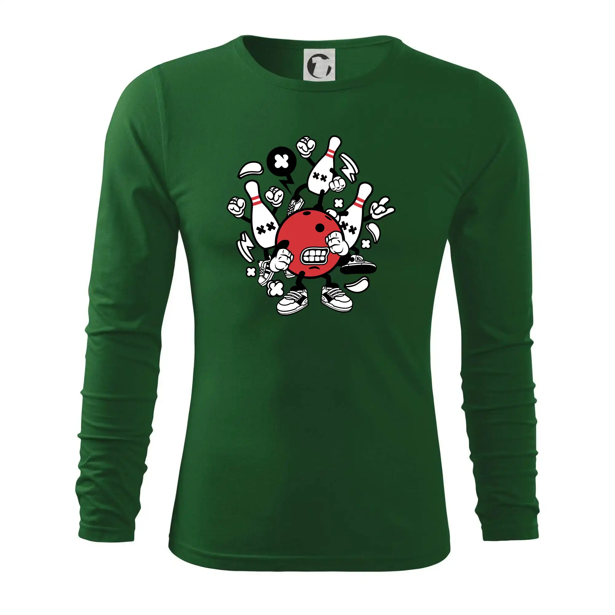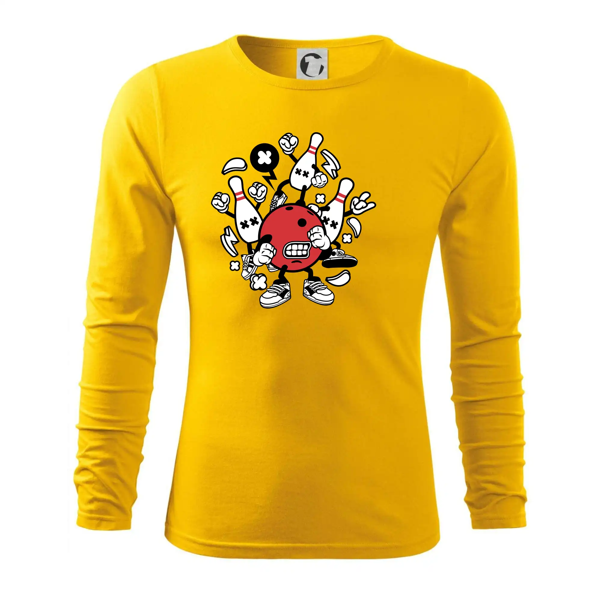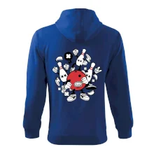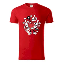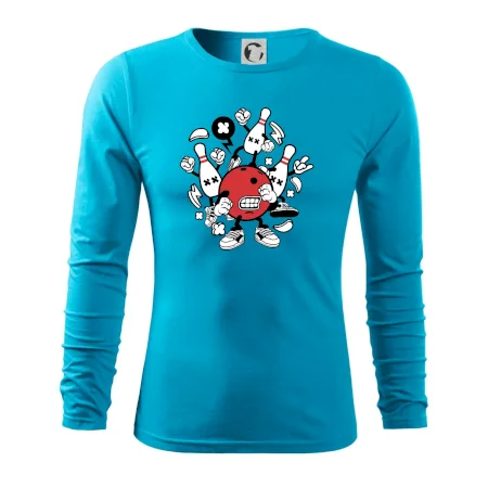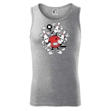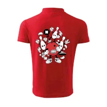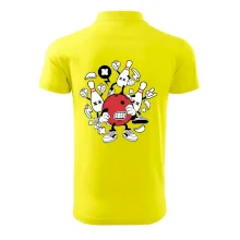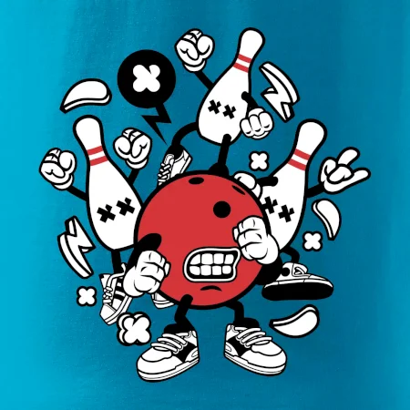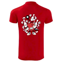 Triko pro hráče bowlingu, na kterém je bowlingová koule a kuželky. Bowlingové triko by měl mít každý bowlingový hráč. S bowlingovým trikem to bude samý strike, žádná kuželka neunikne!