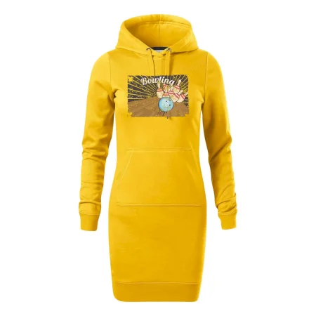 Dámské mikinové šaty MALFINI Snap 419 jsou ideální volbou pro ženy, které hledají pohodlný a stylový kousek pro volný čas nebo každodenní nošení. Lehce vypasovaný střih s bočními švy podtrhuje ženskou siluetu, zatímco kapuce s podšívkou a stahovací šňůrkou dodává ležérní vzhled. Šaty mají délku nad kolena a jsou vybaveny nakládanou kapsou ve stylu „klokanky“. Materiál je měkký a příjemný na dotek díky směsi bavlny a polyesteru s nepočesanou vnitřní stranou.