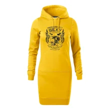 Dámské mikinové šaty MALFINI Snap 419 jsou ideální volbou pro ženy, které hledají pohodlný a stylový kousek pro volný čas nebo každodenní nošení. Lehce vypasovaný střih s bočními švy podtrhuje ženskou siluetu, zatímco kapuce s podšívkou a stahovací šňůrkou dodává ležérní vzhled.