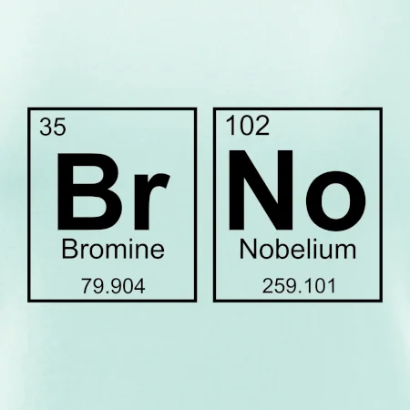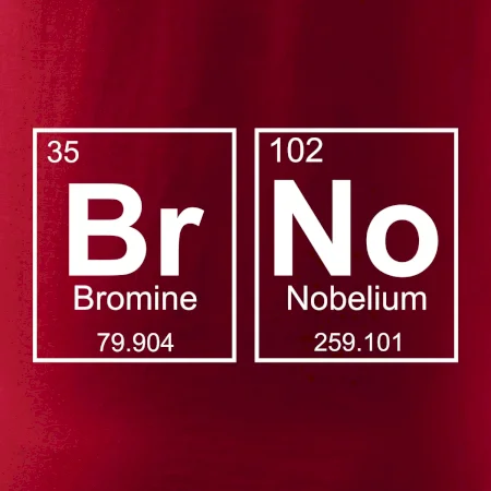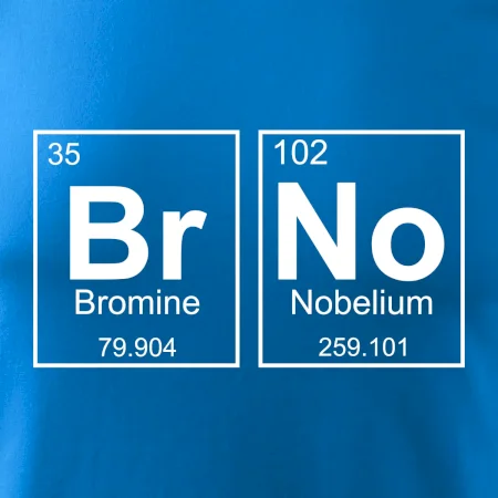 Triko pro Brňáka, který má rád chemii. Z prvků periodické tabulky lze poskládat mnoho. Proč si tedy nevybrat ten správný prvek a na triko si nenatisknout třeba nápis BrNo. Chemické triko je vhodný dárek pro Brňáka.