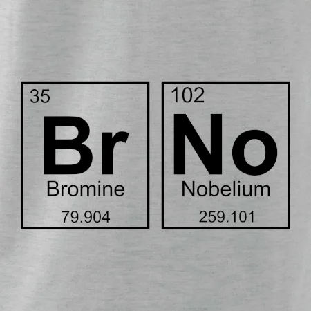 Triko pro Brňáka, který má rád chemii. Z prvků periodické tabulky lze poskládat mnoho. Proč si tedy nevybrat ten správný prvek a na triko si nenatisknout třeba nápis BrNo. Chemické triko je vhodný dárek pro Brňáka.