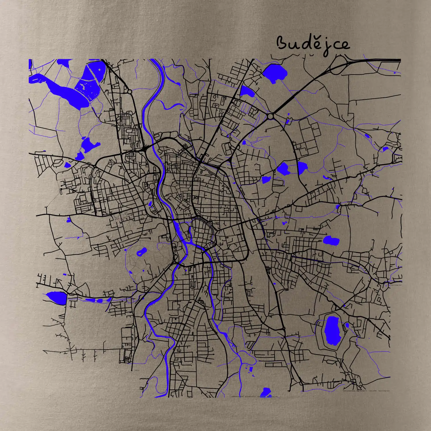 Budějce - Mapa s vodními toky