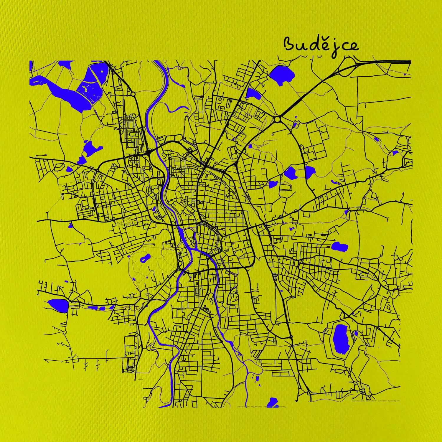 Budějce - Mapa s vodními toky