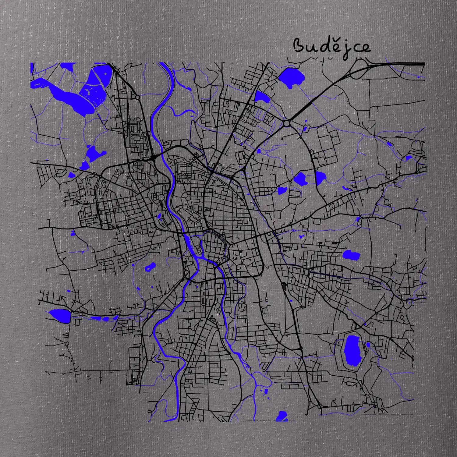 Budějce - Mapa s vodními toky