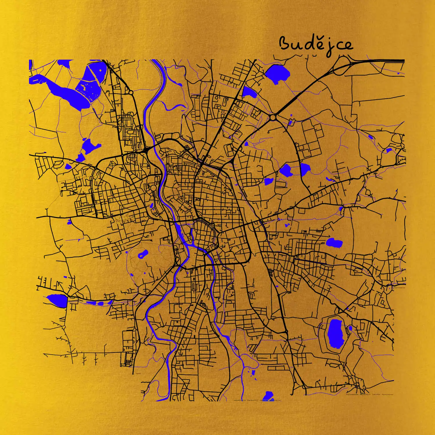 Budějce - Mapa s vodními toky