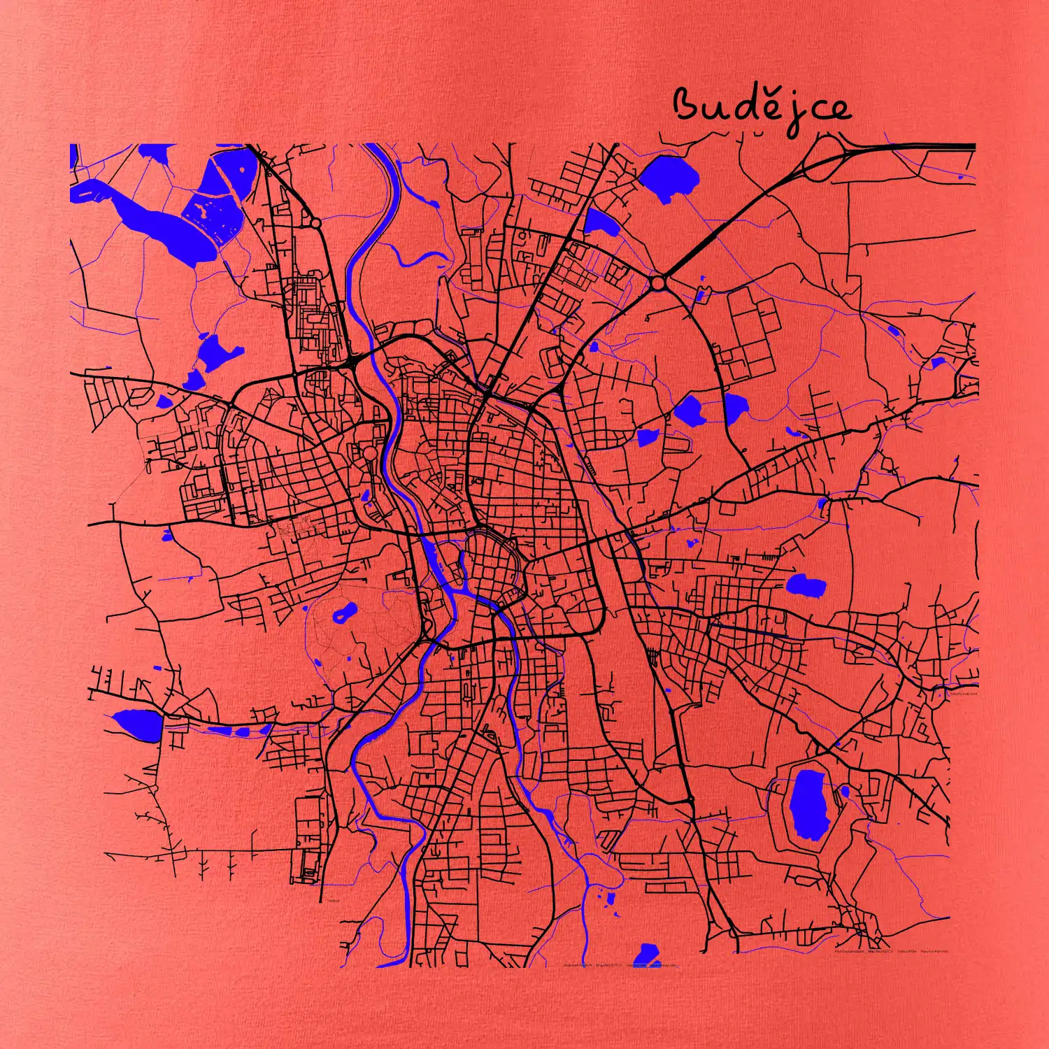 Budějce - Mapa s vodními toky