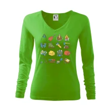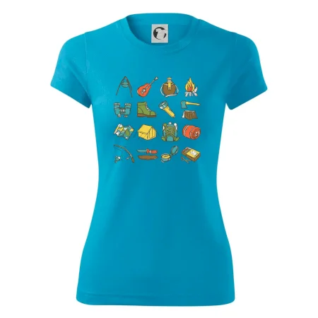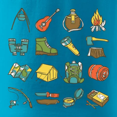 Tohle triko pro kempaře ti může posloužit jako seznam věcí, které si máš vzít na čundr. Odškrtávej si: kytara, ešus, čutora, dalekohled, baterka, sekyrka, spacák, stan, mapa, sirky, kompas, nůž, zápalky ... máš všechno? Pak můžeš vyrazit a prožít pořádné dobrodružství při kempování v lese. Dárek pro kempaře potěší všechny milovníky toulání se v přírodě.