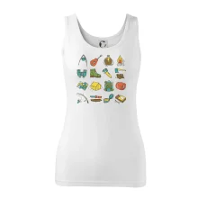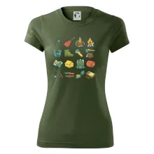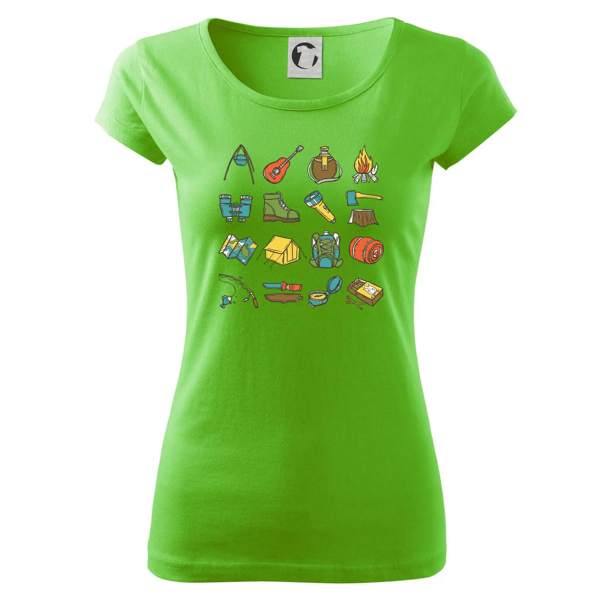 Tohle triko pro kempaře ti může posloužit jako seznam věcí, které si máš vzít na čundr. Odškrtávej si: kytara, ešus, čutora, dalekohled, baterka, sekyrka, spacák, stan, mapa, sirky, kompas, nůž, zápalky ... máš všechno? Pak můžeš vyrazit a prožít pořádné dobrodružství při kempování v lese. Dárek pro kempaře potěší všechny milovníky toulání se v přírodě.