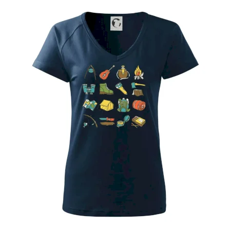Tohle triko pro kempaře ti může posloužit jako seznam věcí, které si máš vzít na čundr. Odškrtávej si: kytara, ešus, čutora, dalekohled, baterka, sekyrka, spacák, stan, mapa, sirky, kompas, nůž, zápalky ... máš všechno? Pak můžeš vyrazit a prožít pořádné dobrodružství při kempování v lese. Dárek pro kempaře potěší všechny milovníky toulání se v přírodě.