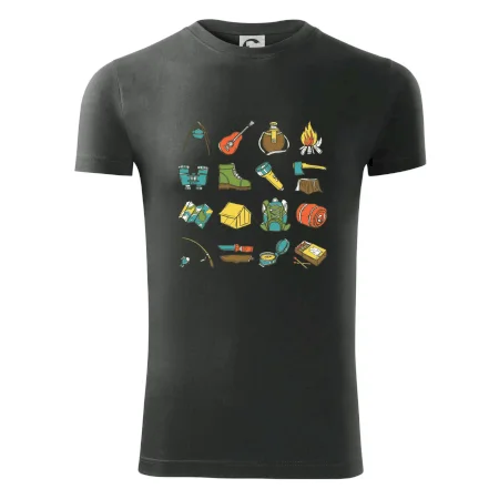 Tohle triko pro kempaře ti může posloužit jako seznam věcí, které si máš vzít na čundr. Odškrtávej si: kytara, ešus, čutora, dalekohled, baterka, sekyrka, spacák, stan, mapa, sirky, kompas, nůž, zápalky ... máš všechno? Pak můžeš vyrazit a prožít pořádné dobrodružství při kempování v lese. Dárek pro kempaře potěší všechny milovníky toulání se v přírodě.