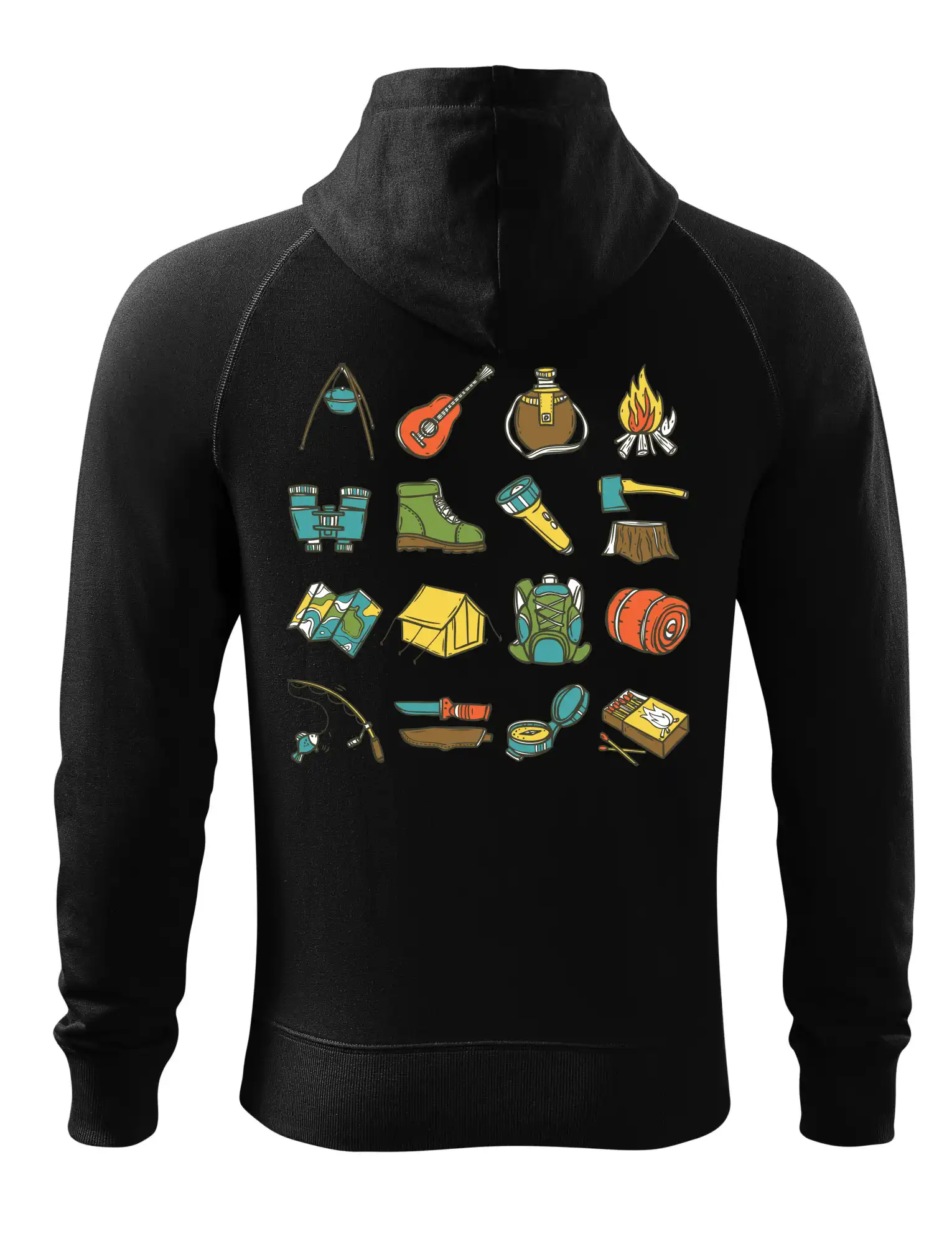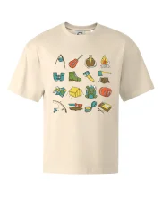 Tohle triko pro kempaře ti může posloužit jako seznam věcí, které si máš vzít na čundr. Odškrtávej si: kytara, ešus, čutora, dalekohled, baterka, sekyrka, spacák, stan, mapa, sirky, kompas, nůž, zápalky ... máš všechno? Pak můžeš vyrazit a prožít pořádné dobrodružství při kempování v lese. Dárek pro kempaře potěší všechny milovníky toulání se v přírodě.
