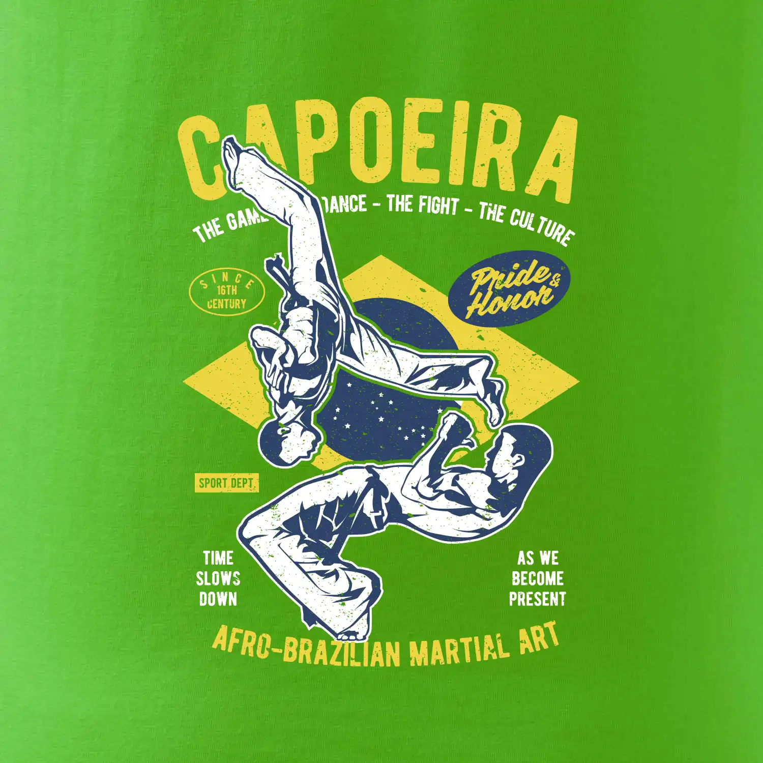 Máš rád bojové sporty, co napříklas capoeira. Kopy, salta a přemety. Kup si stylové tričko s bojovým uměním. Tričko s motivem sportu capoeira je vhodný dárek pro každého milovníka tohoto sportu.