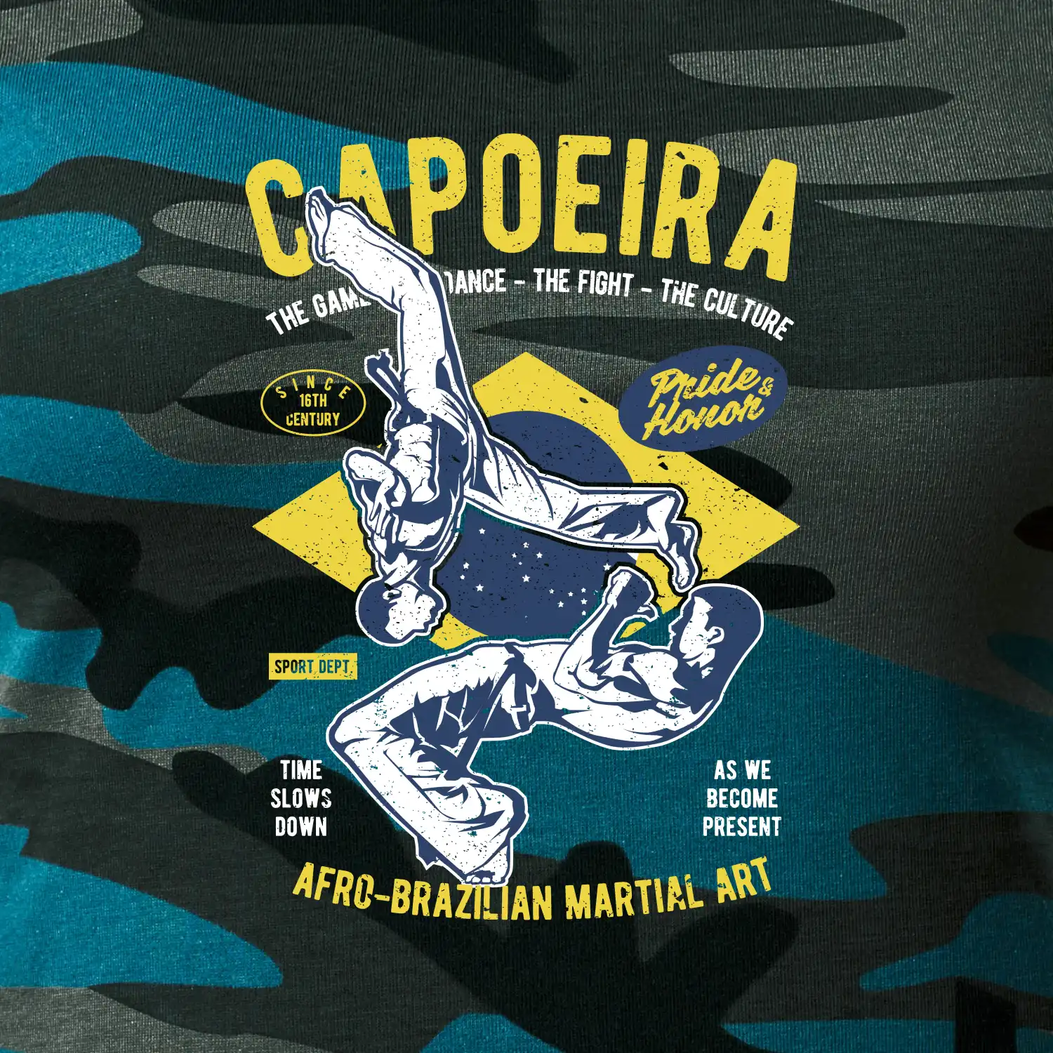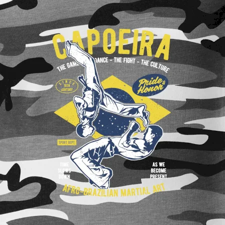 Máš rád bojové sporty, co napříklas capoeira. Kopy, salta a přemety. Kup si stylové tričko s bojovým uměním. Tričko s motivem sportu capoeira je vhodný dárek pro každého milovníka tohoto sportu.