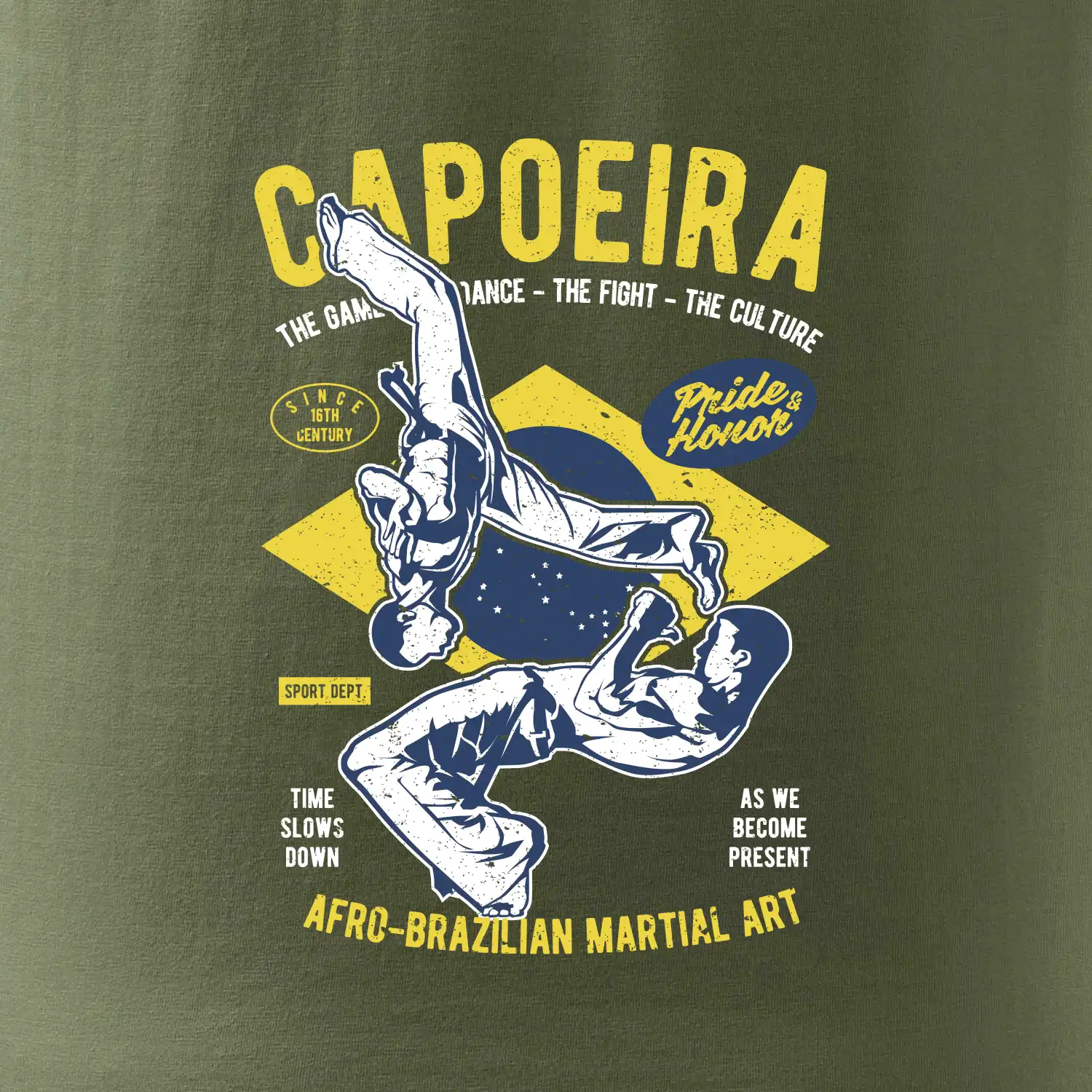 Máš rád bojové sporty, co napříklas capoeira. Kopy, salta a přemety. Kup si stylové tričko s bojovým uměním. Tričko s motivem sportu capoeira je vhodný dárek pro každého milovníka tohoto sportu.