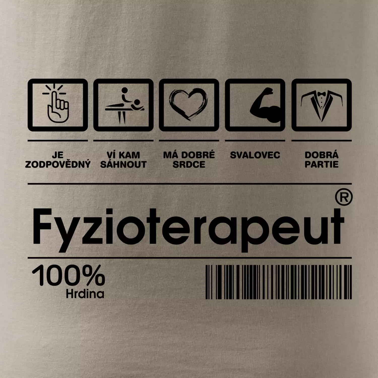 Tričko pro fyzioterapeuta. Vyber si motiv se svým čárovým kódem a ukaž, co jsi zač! Najdeš u nás spoustu dalších povolání!