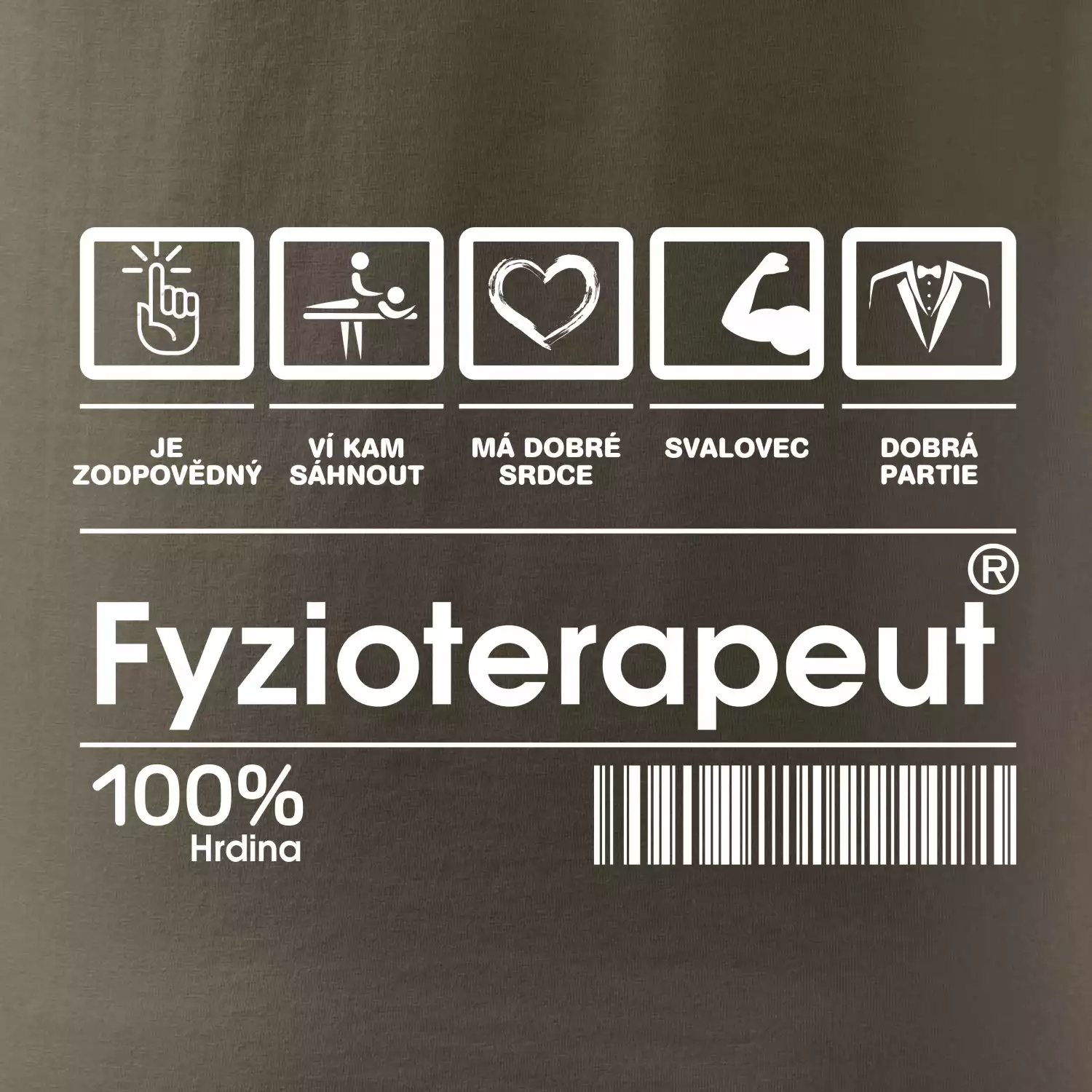 Tričko pro fyzioterapeuta. Vyber si motiv se svým čárovým kódem a ukaž, co jsi zač! Najdeš u nás spoustu dalších povolání!