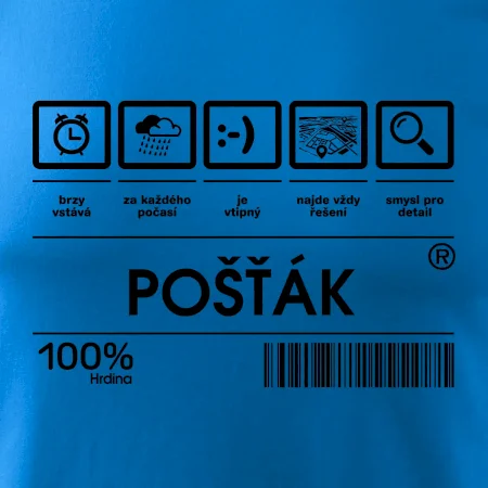 Skvělé tričko pro každého poštáka! Pošťák je nedoceněné povolání, ale určitě nezbytné, sháníš dárek pro pošťáka? Pak čárový kód pošťák je ten nejlepší dárek, který dokážeme natisknout nejen na triko třeba i na polštář.