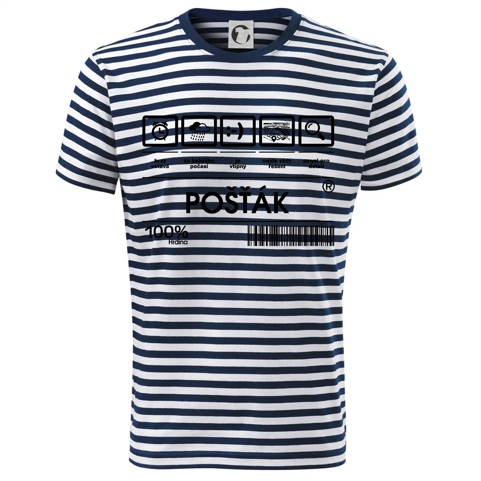 Skvělé tričko pro každého poštáka! Pošťák je nedoceněné povolání, ale určitě nezbytné, sháníš dárek pro pošťáka? Pak čárový kód pošťák je ten nejlepší dárek, který dokážeme natisknout nejen na triko třeba i na polštář.