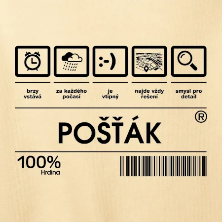 Skvělé tričko pro každého poštáka! Pošťák je nedoceněné povolání, ale určitě nezbytné, sháníš dárek pro pošťáka? Pak čárový kód pošťák je ten nejlepší dárek, který dokážeme natisknout nejen na triko třeba i na polštář.