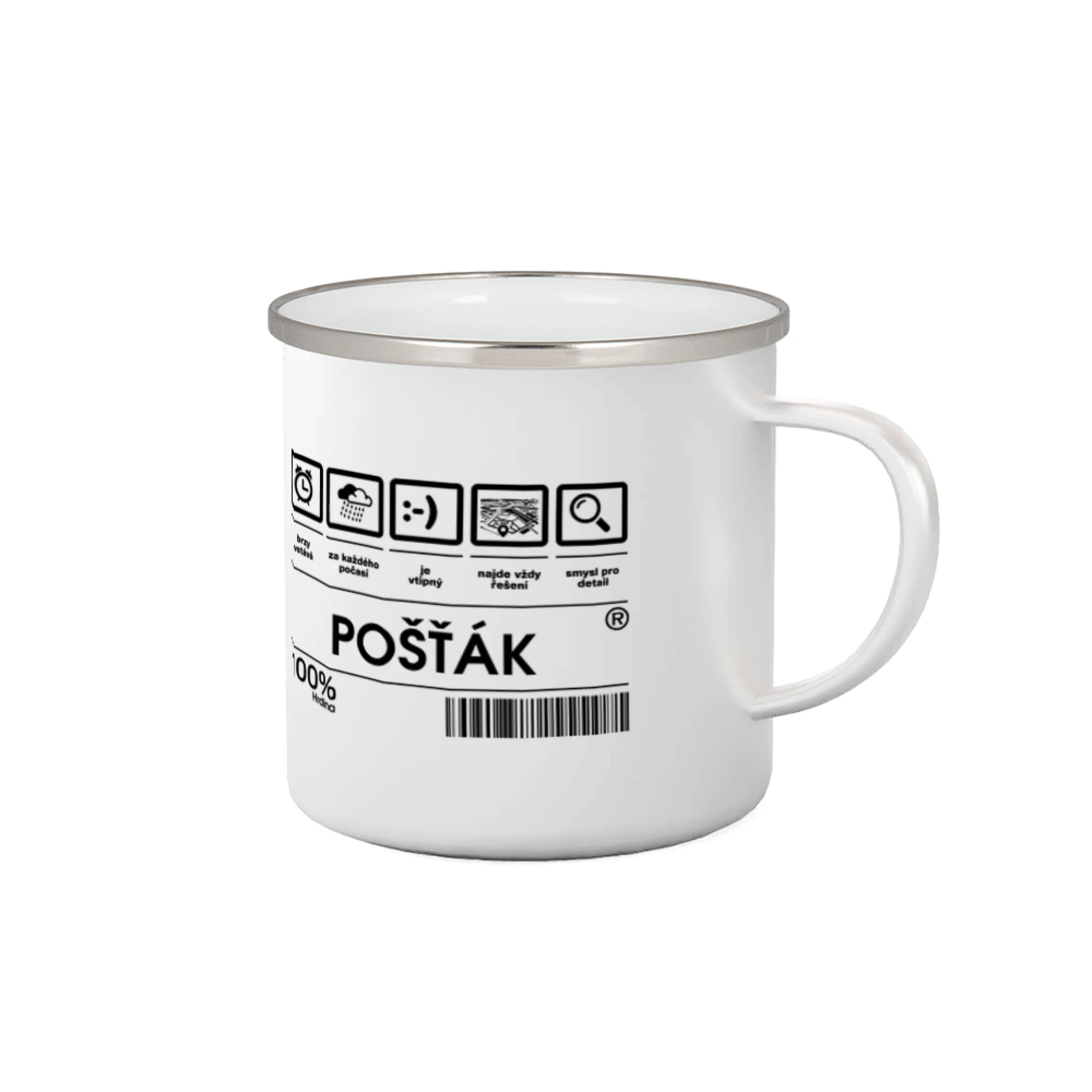 Výrobní proces smaltovaných šálků nevyhnutelně zahrnuje určité nerovnosti. Ty se projevují v podobě mírných otlaků a důlků (bez ztráty smaltu) a malých černých skvrn na povrchu hrnku a na rukojeti. Tyto nerovnosti podtrhují retro vzhled šálků a nejsou důvodem k reklamaci.