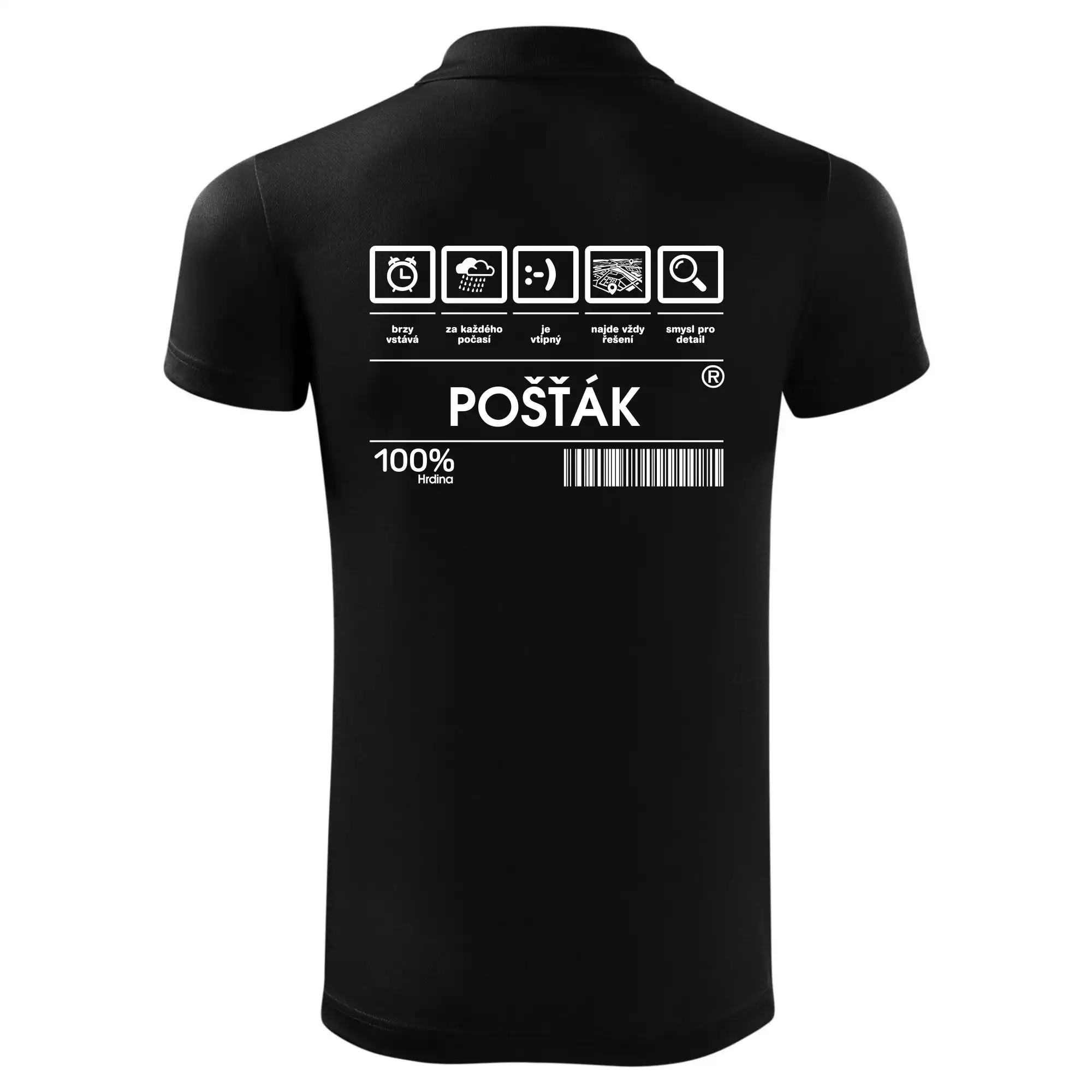 Skvělé tričko pro každého poštáka! Pošťák je nedoceněné povolání, ale určitě nezbytné, sháníš dárek pro pošťáka? Pak čárový kód pošťák je ten nejlepší dárek, který dokážeme natisknout nejen na triko třeba i na polštář.