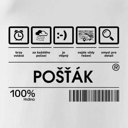 Skvělé tričko pro každého poštáka! Pošťák je nedoceněné povolání, ale určitě nezbytné, sháníš dárek pro pošťáka? Pak čárový kód pošťák je ten nejlepší dárek, který dokážeme natisknout nejen na triko třeba i na polštář.