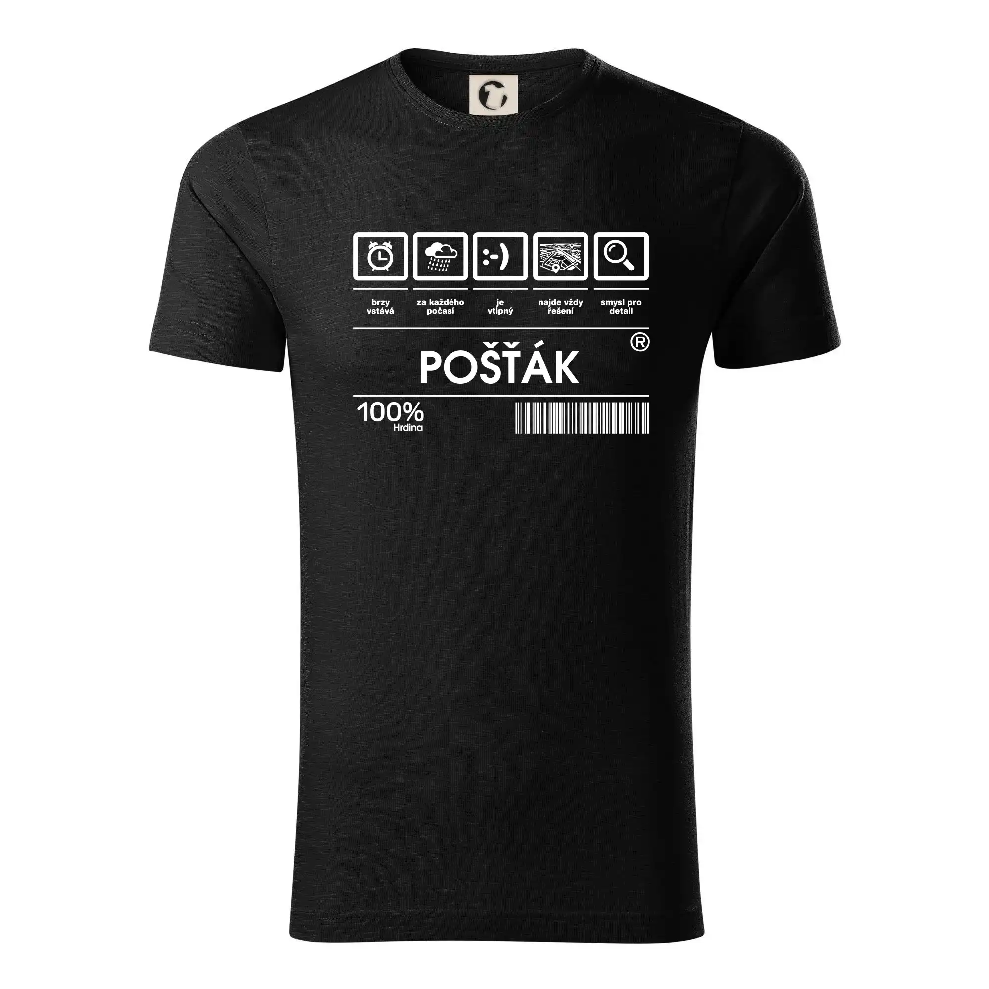 Skvělé tričko pro každého poštáka! Pošťák je nedoceněné povolání, ale určitě nezbytné, sháníš dárek pro pošťáka? Pak čárový kód pošťák je ten nejlepší dárek, který dokážeme natisknout nejen na triko třeba i na polštář.