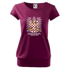 Trendové dámské triko s velmi krátkým rukávem, volnějšího střihu, v dolním kraji všité do širokého lemu. Kulatý průkrčník s úzkým lemem ze shodného materiálu.