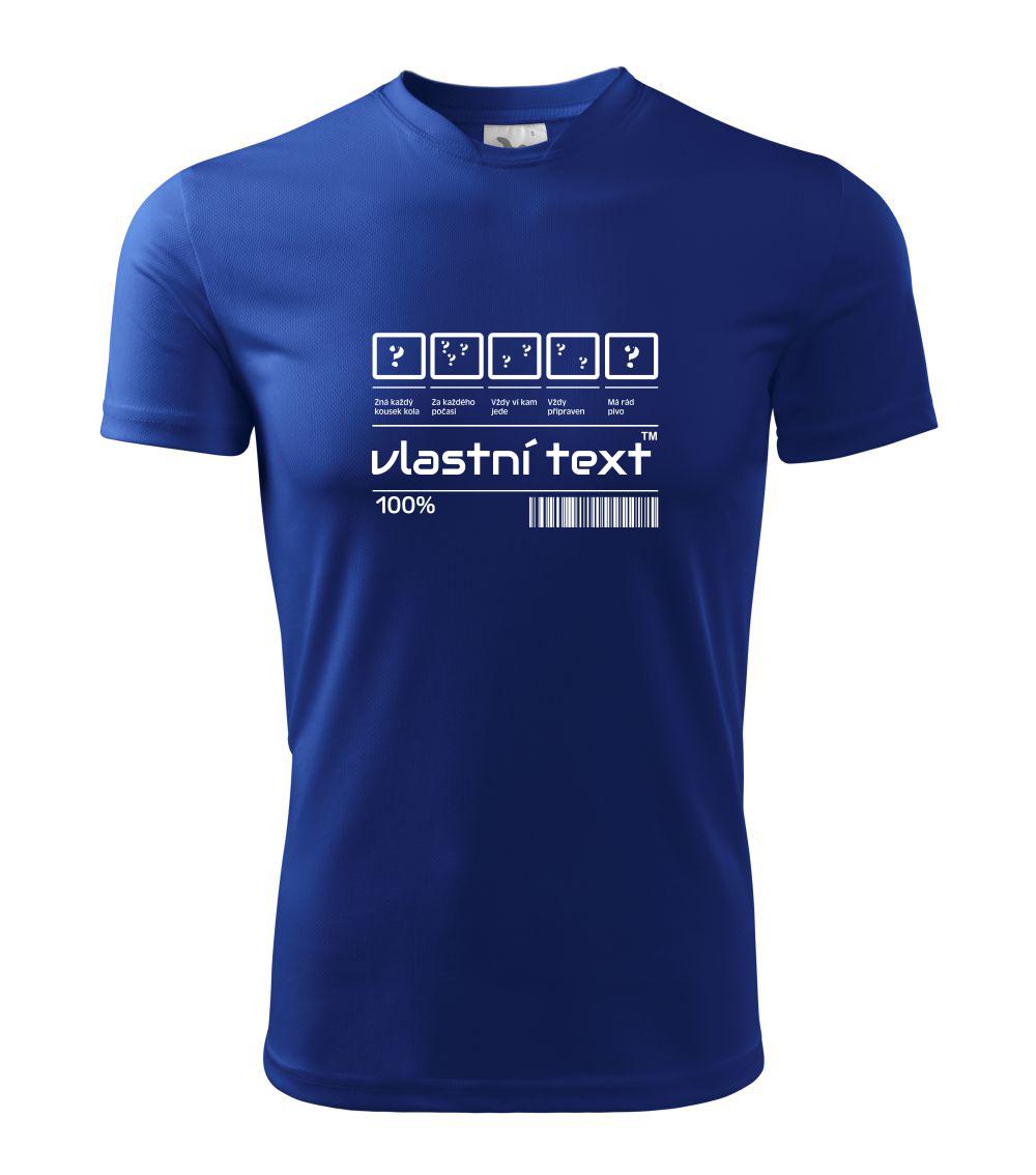 Do poznámky k objednávce nám napiš co chceš mít místo nápisu "vlastní text" a my doplníme ikonky, texty a budeš moct darovat naprosto originální triko. Tričko s originálním čárovým kódem pro každého. Čárový kód na přání!
