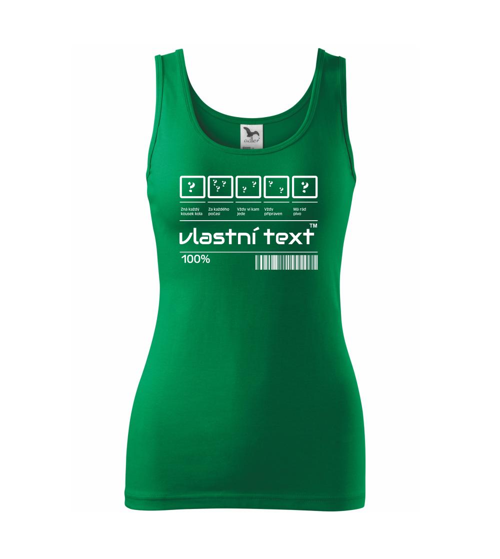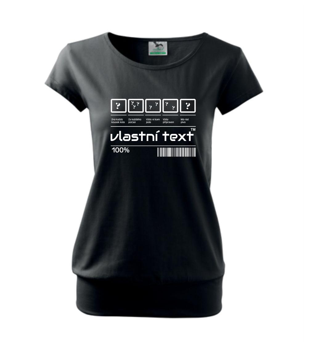Do poznámky k objednávce nám napiš co chceš mít místo nápisu "vlastní text" a my doplníme ikonky, texty a budeš moct darovat naprosto originální triko. Tričko s originálním čárovým kódem pro každého. Čárový kód na přání!