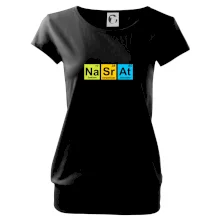 Trendové dámské triko s velmi krátkým rukávem, volnějšího střihu, v dolním kraji všité do širokého lemu. Kulatý průkrčník s úzkým lemem ze shodného materiálu.