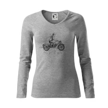 Tolerantnější vypasování dámského střihu, který je vhodný pro všechny typy postavy, ideální délka rukávů a konzervativní výstřih zakončený žebrováním, které skvěle drží tvar.