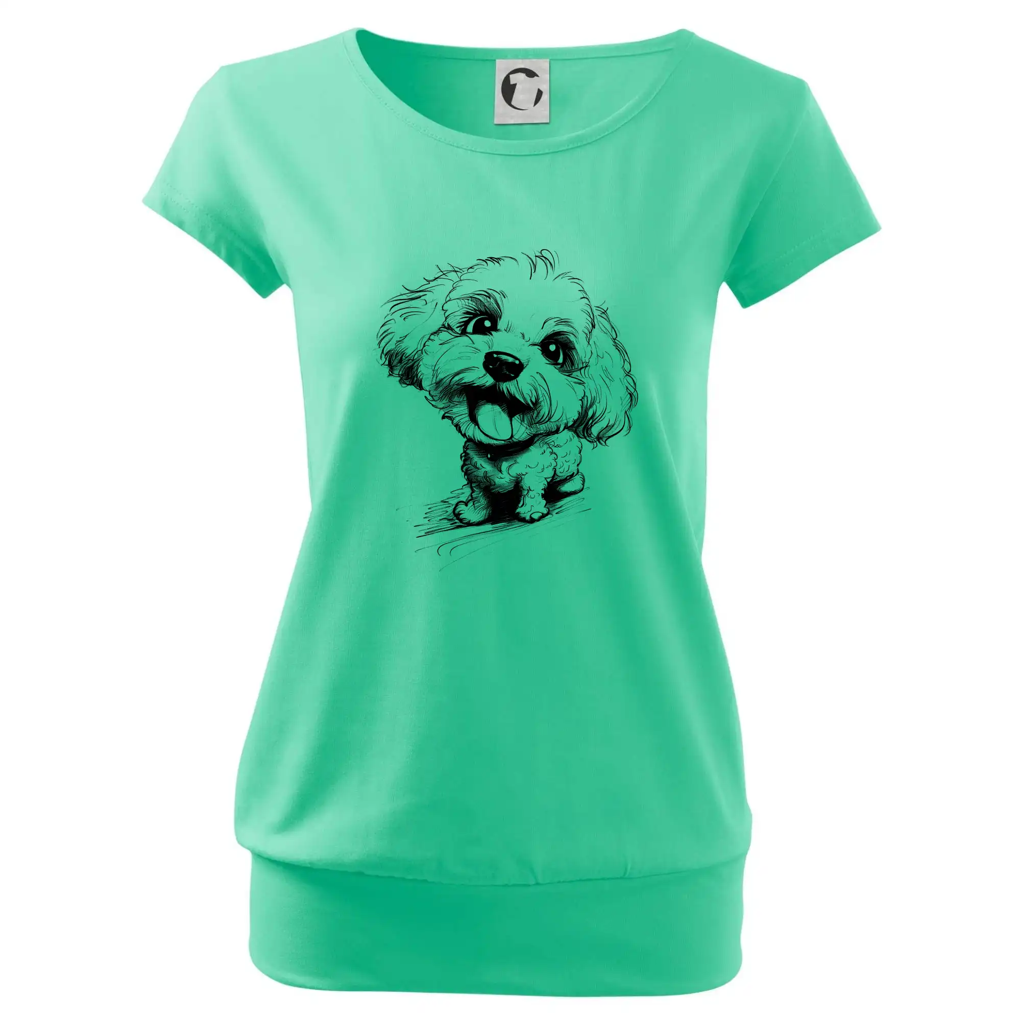 Trendové dámské triko s velmi krátkým rukávem, volnějšího střihu, v dolním kraji všité do širokého lemu. Kulatý průkrčník s úzkým lemem ze shodného materiálu.