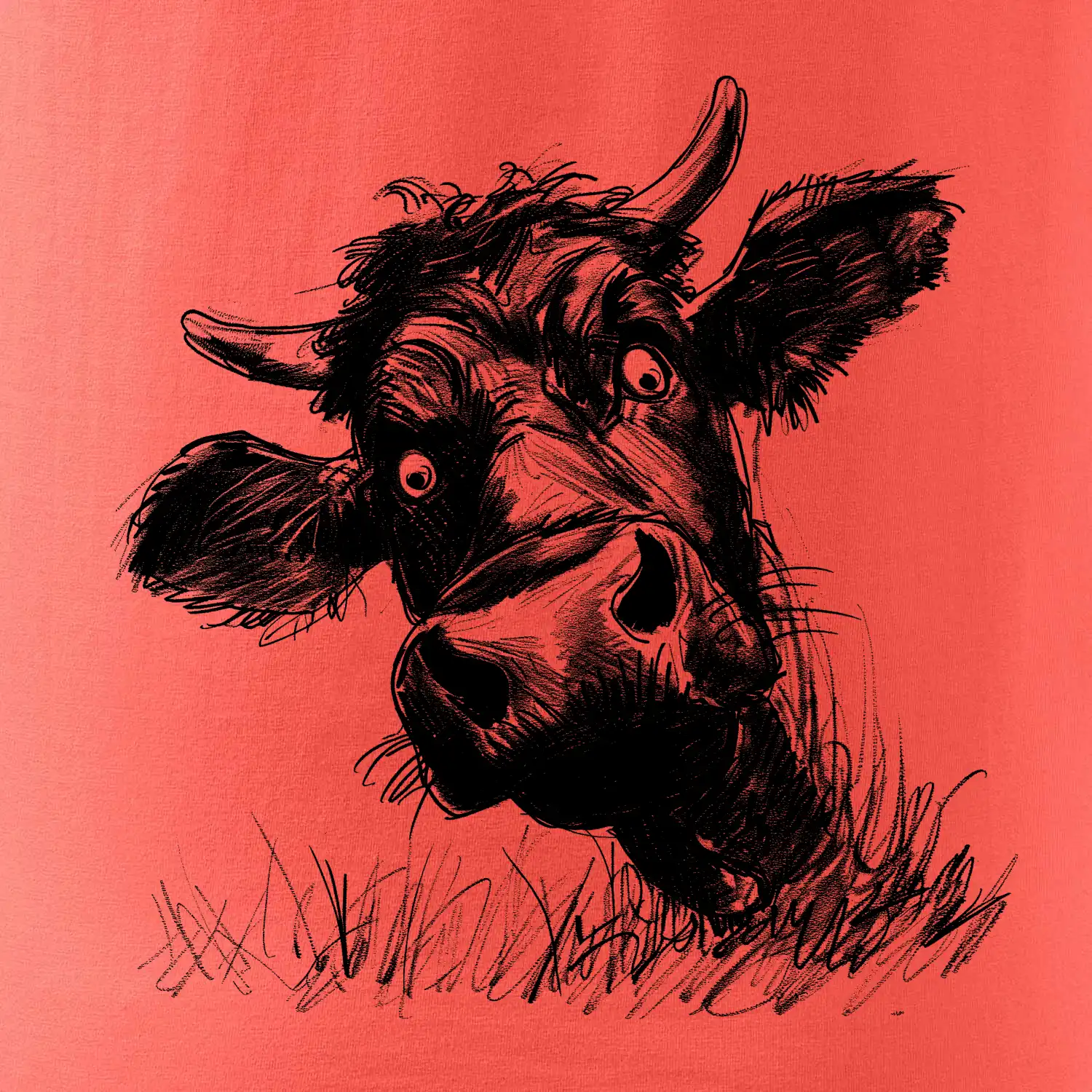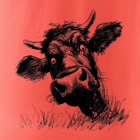 Černobílá karikatura černá kráva hlava