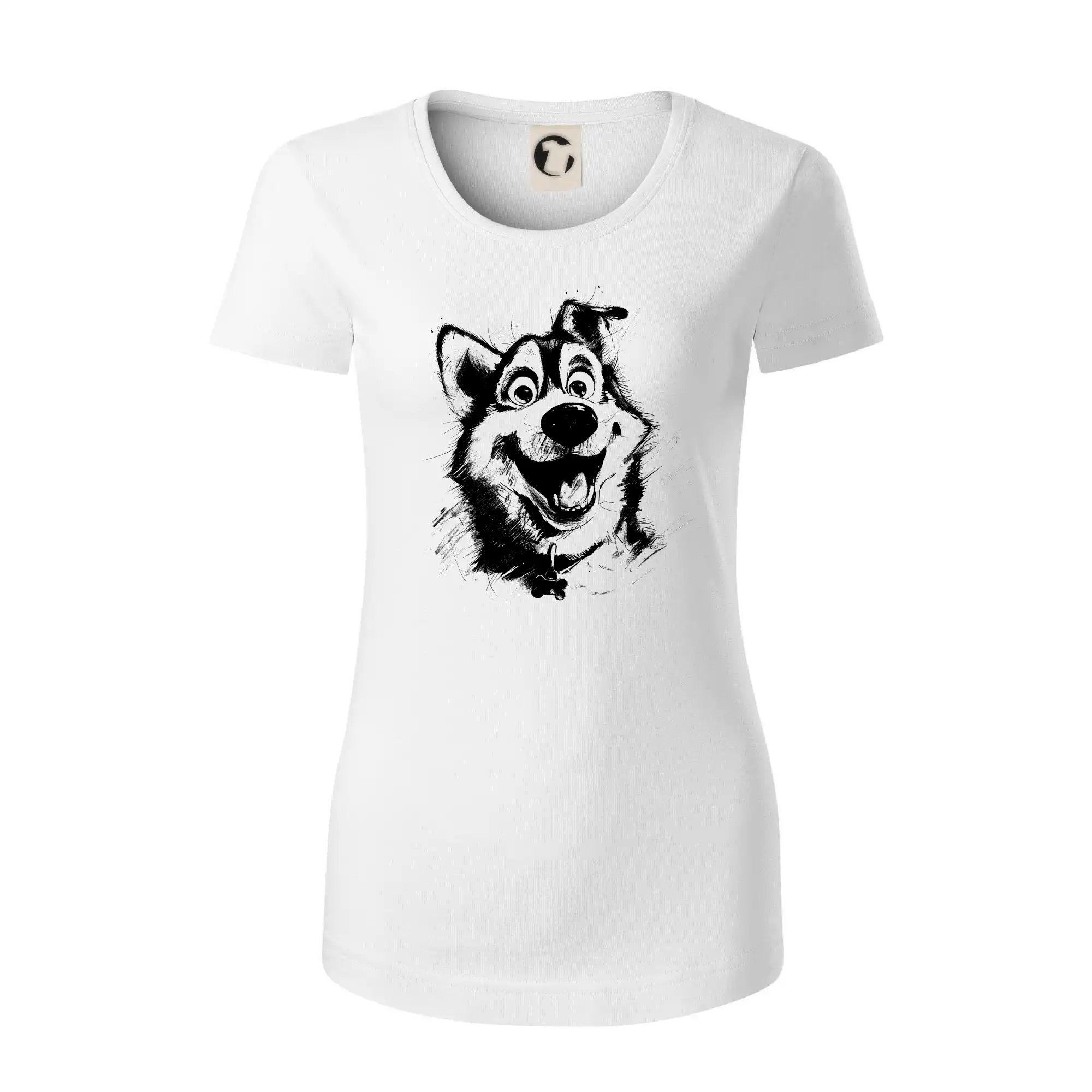 Černobílá karikatura husky