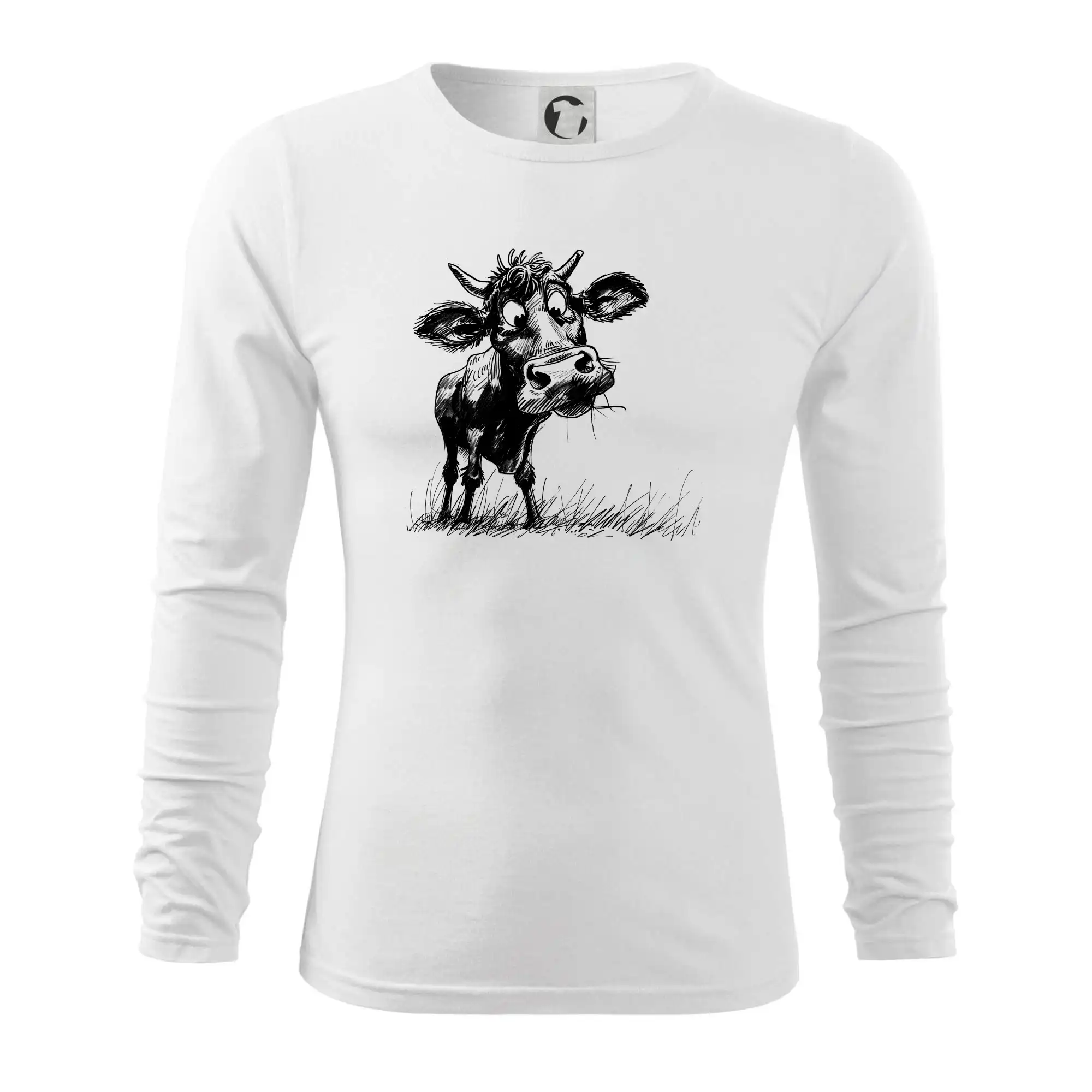 Černobílá karikatura kráva stojící
