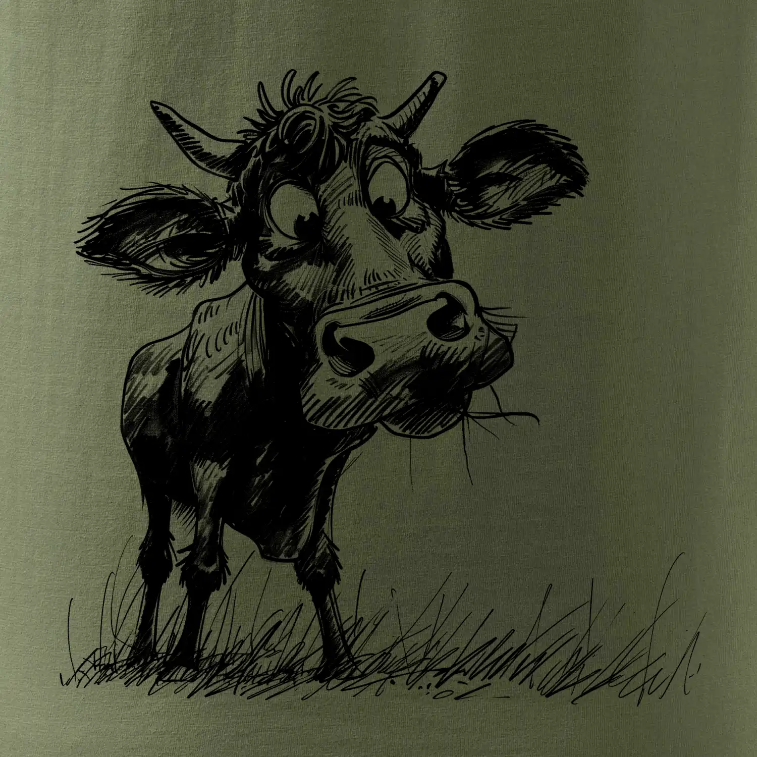 Černobílá karikatura kráva stojící