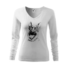 Tolerantnější vypasování dámského střihu, který je vhodný pro všechny typy postavy, ideální délka rukávů a konzervativní výstřih zakončený žebrováním, které skvěle drží tvar.