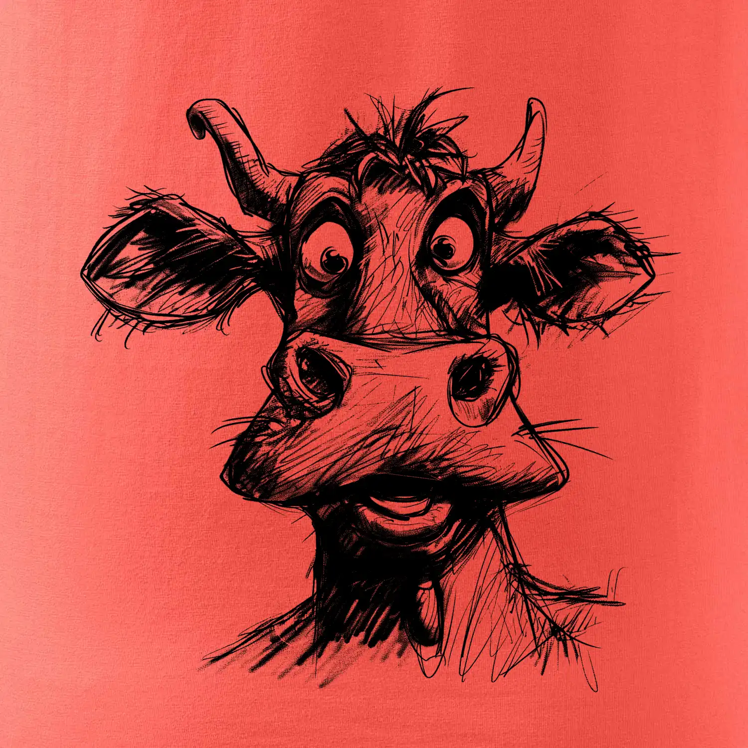 Černobílá karikatura světlá kráva hlava