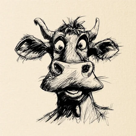 Černobílá karikatura světlá kráva hlava