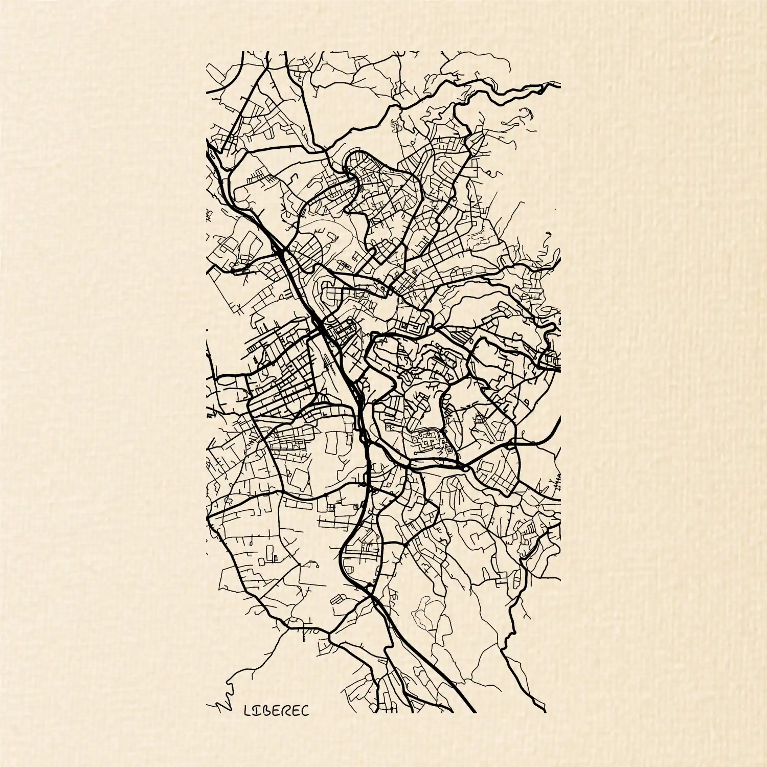 Černobílá mapa Liberec
