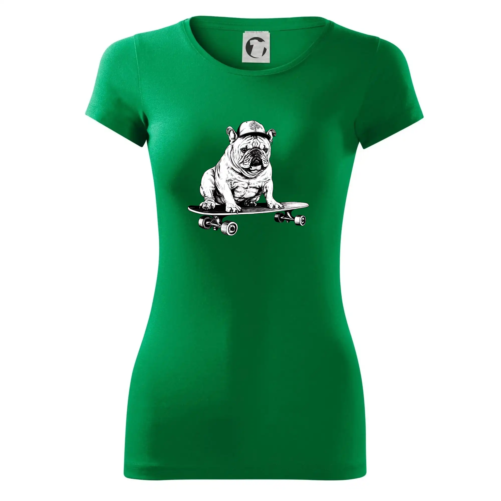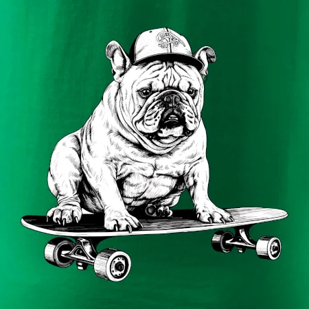 Černobílý buldok na skateboardu