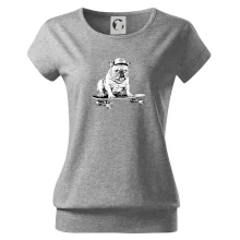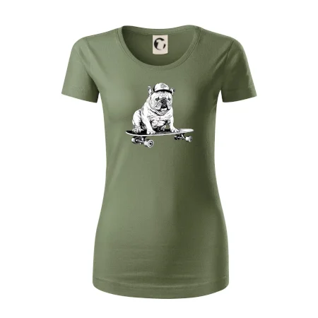 Černobílý buldok na skateboardu