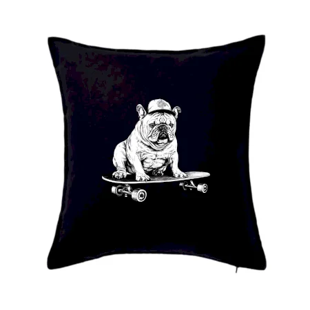 Černobílý buldok na skateboardu