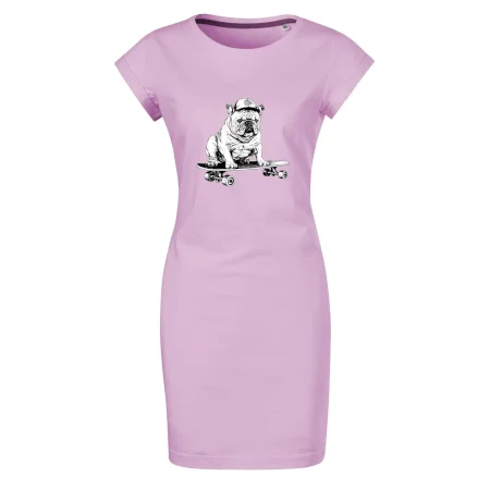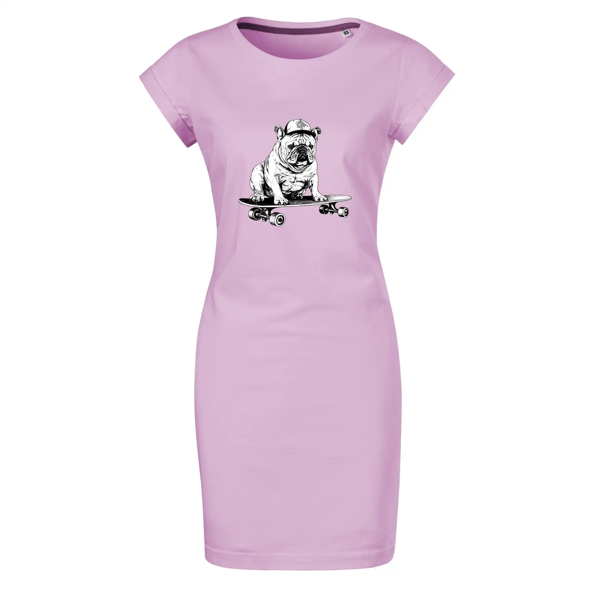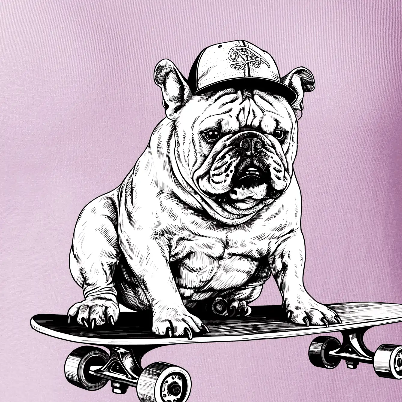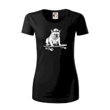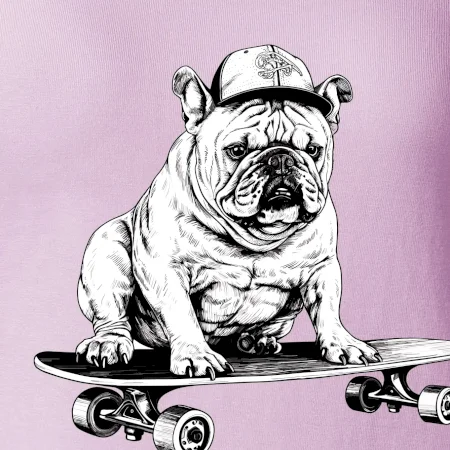Černobílý buldok na skateboardu