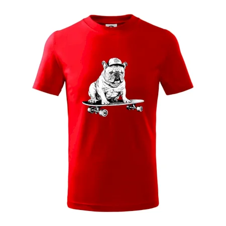 Černobílý buldok na skateboardu