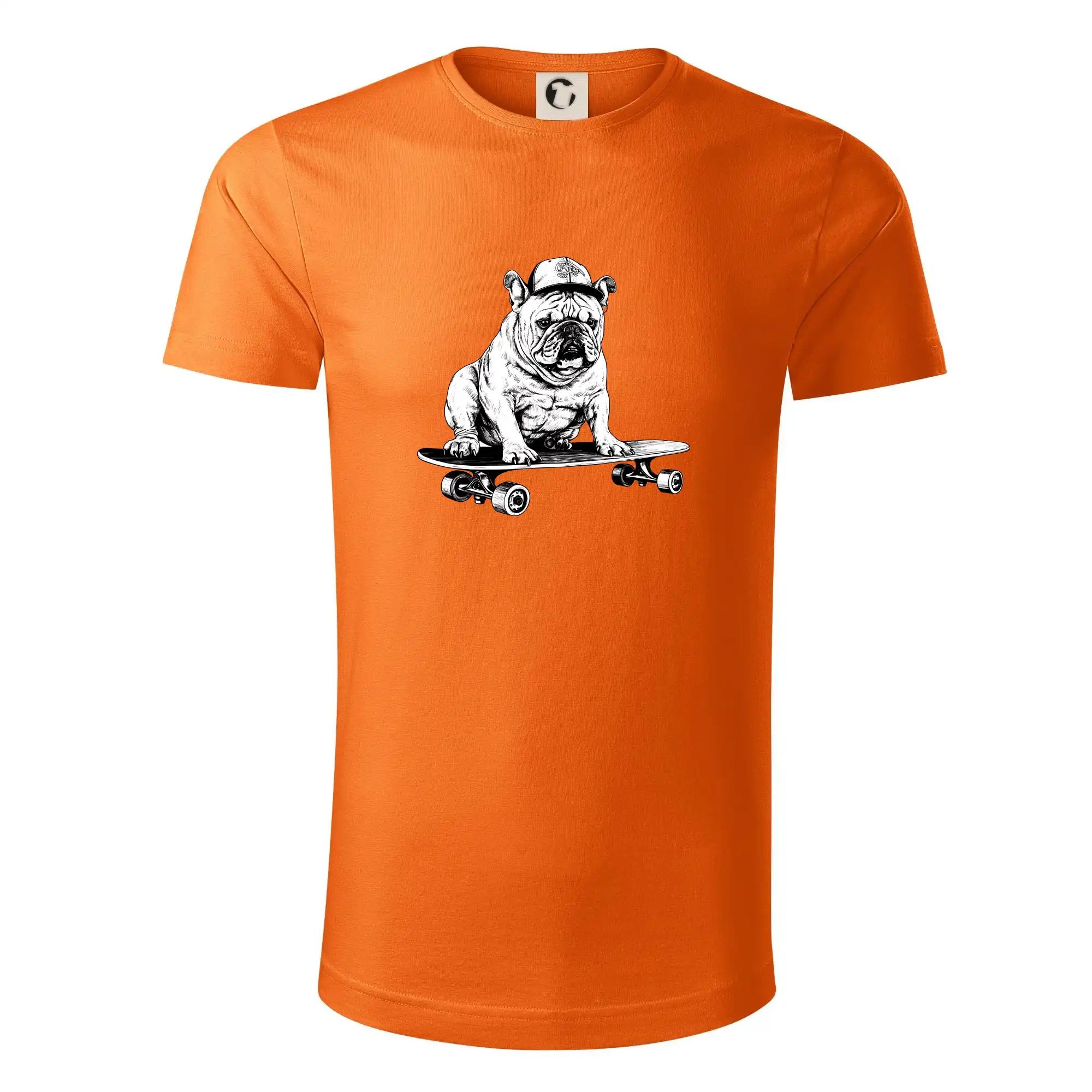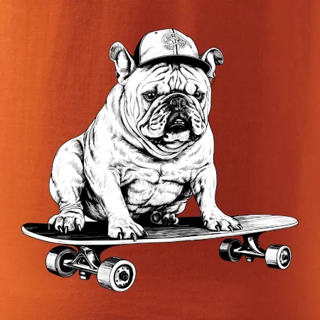 Černobílý buldok na skateboardu