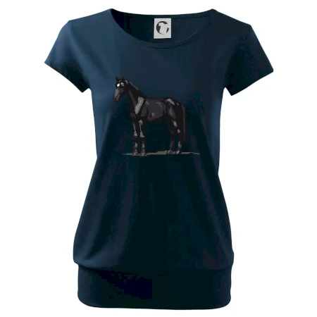 Trendové dámské triko s velmi krátkým rukávem, volnějšího střihu, v dolním kraji všité do širokého lemu. Kulatý průkrčník s úzkým lemem ze shodného materiálu.
